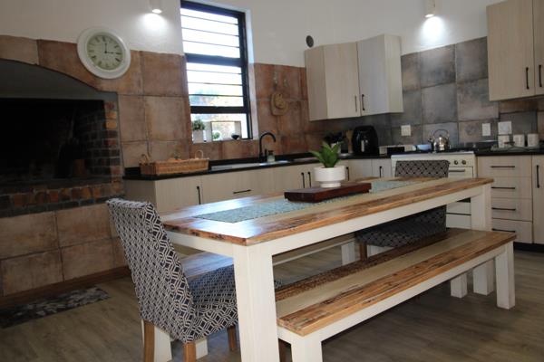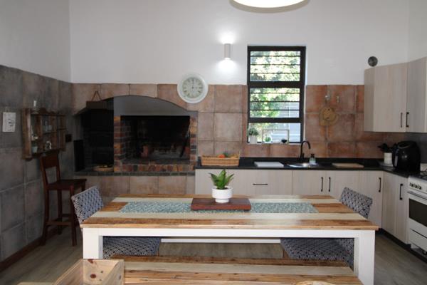 The open-plan lounge, dining area, and kitchen create a sense of connection and comfort. The kitchen boasts a built-in braai and oven, ideal for baking homemade bread. A stove and fridge are included in the sale. The separate scullery leads out to the backyard where youll find washing lines and a Wendy house for extra storage. A built-in pantry adds to the practicality of this well-thought-out space.