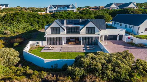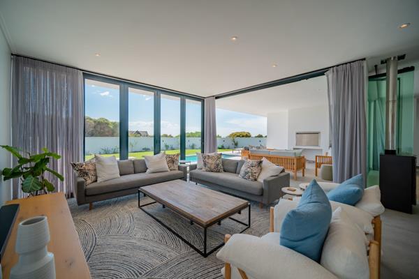 There are two east-facing bedrooms that have sliding doors out onto the garden. They are well protected from the prevailing winds and gets lots of lovely light. One bedroom is north-facing with sliding doors onto the patio and garden on the pool side. The one south-facing bedroom opens onto the private back garden, with a view of the beautiful natural dune ridge. The large bedrooms are luxurious, with air conditioning and underfloor heating in the bathrooms. A guest loo is conveniently situated in the passage.