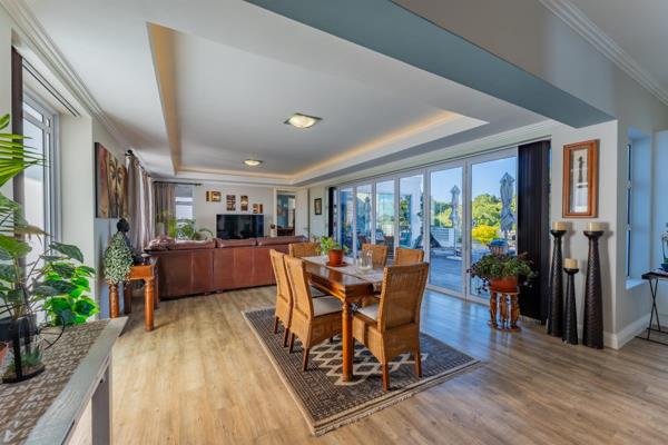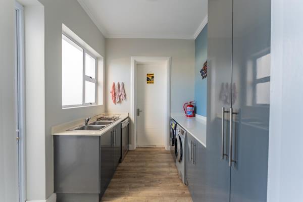 The L shaped layout of the lower level living areas wraps around the outdoor pool and deck area enabling the integrated lounge and dining room as well as the sunroom to open onto this outdoor area creating a natural extension of the living space . Expansive glass stacking doors in the sunroom, which has a built in braai, provides a seamless indoor/outdoor interaction enhancing easy entertaining and outdoor living.