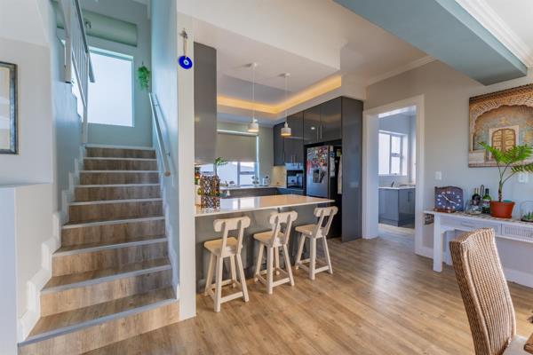 Lovely distant village and sea views from the balcony and bedroom upstairs. Potential to build a flatlet/5th bedroom/study above double garage. Tray ceiling lighting throughout