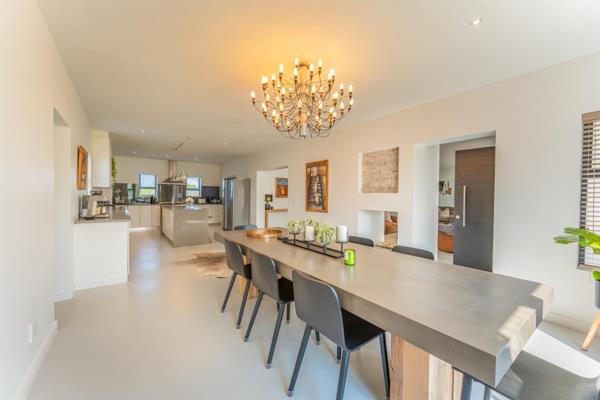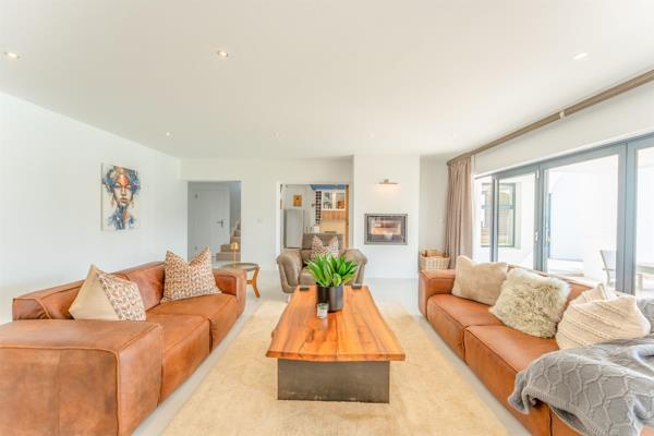 Inside, the home is designed for versatility and comfort, featuring three distinct lounge areas and a thoughtfully designed entertainment space. A sophisticated built-in bar with custom cabinetry leads to the indoor braai area, which flows into a luxurious lounge complete with a cozy fireplace. From here, stacker doors open onto a private heated pool oasis, creating the ultimate year-round entertaining space.