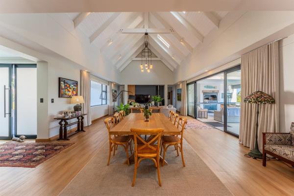 This beautifully crafted home celebrates a connection to its serene surroundings. Celebrating seamless indoor-outdoor living its expansive covered verandah is a standout feature and a superb entertainment space with both dining and seating areas, a built-in braai, and uninterrupted panoramic views over the 16th fairway. The verandah overlooks an attractive plunge pool set within a landscaped, walled garden, also creating a tranquil and private retreat.