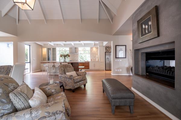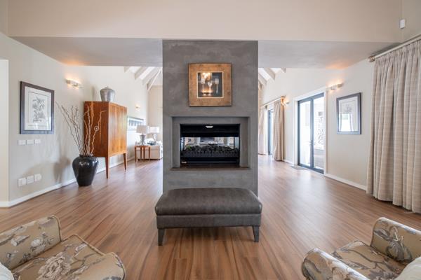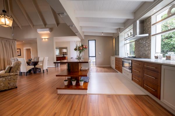 The generous kitchen space which serves the open plan dining and living area, leads onto an equally spacious Butler''s pantry and then to a well designed laundry. The vast patio with ''indoor braai has aluminium stacker doors onto a sunny verandah overlooking the lush landscape.