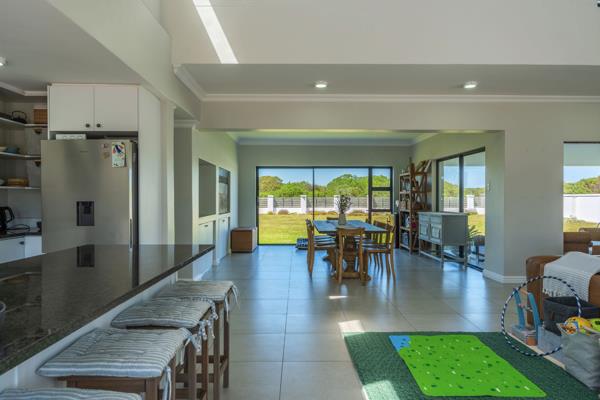 Cleverly designed to welcome in light and warmth throughout, this home feels inviting from the moment you walk in. The open-plan living area, kitchen, and dining room with indoor braai, are all part of a generous double-volume space that creates a wonderful sense of openness. On the south side, sliding doors lead out to a sheltered patio overlooking the well-sized garden which is perfect for relaxed afternoons or entertaining friends. You can open up the entire patio and dining area on a lovely day, or close it off to stay snug when the wind picks up.