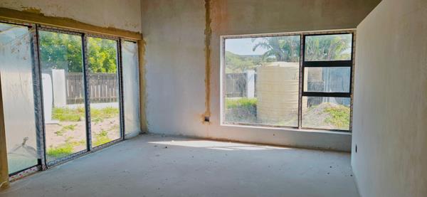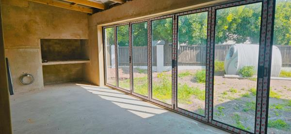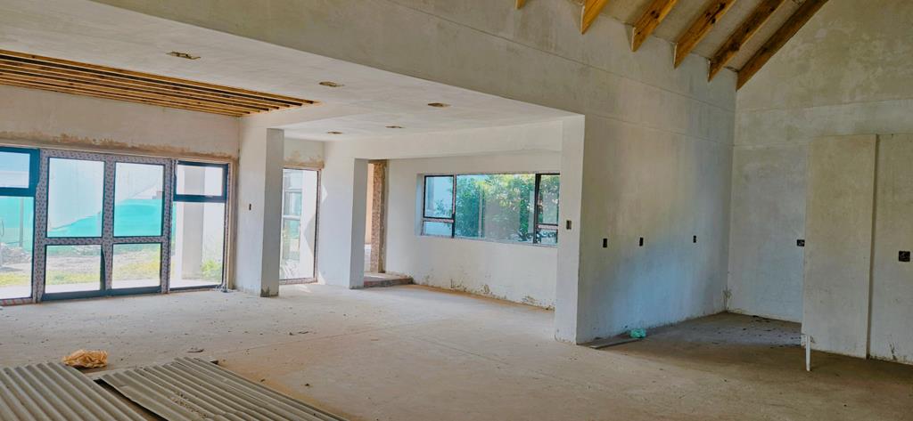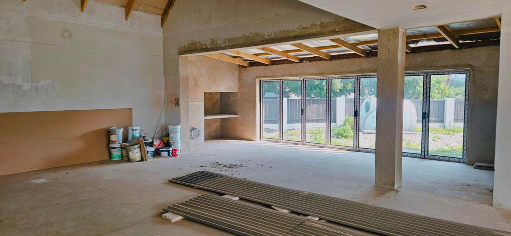 The expansive living area which includes a built in braai is sun filled and flows seamlessly into an open plan kitchen, creating the perfect hub for entertainment and daily living.