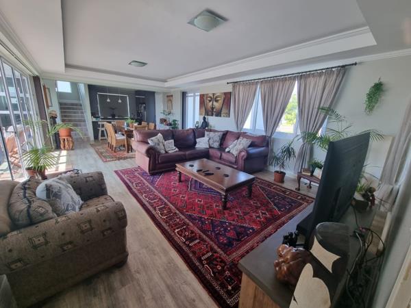 The open-plan kitchen, lounge, and dining area is ideal for entertaining.