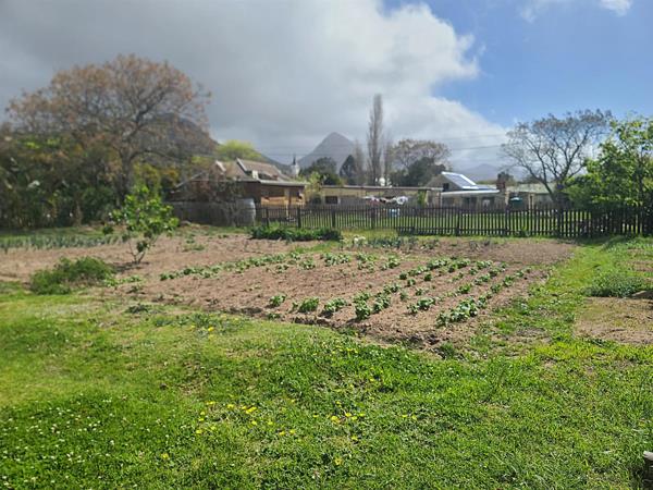 The lounge has a cozy fireplace for the cold winter evenings. The kitchen is old-style and large and has a serving hatch through into the dining/lounge area. The double door garage is slightly longer than standard garages and has a storeroom inside. Behind the garage is an afdak for storage/working space.