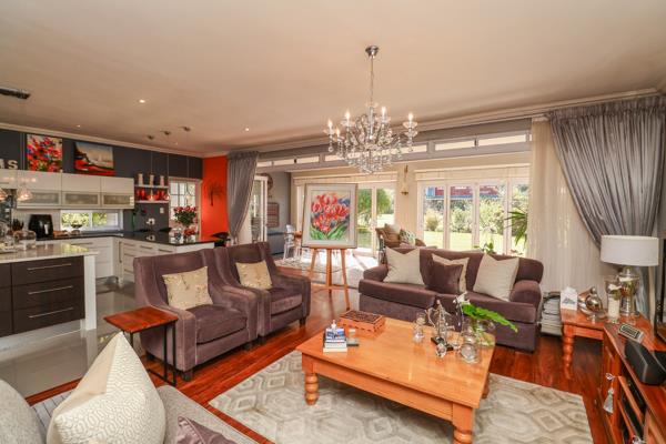 Step into a unique lifestyle in the charming and world-renowned village of Storms River, where international tourists and nature lovers flock year-round to enjoy its beauty and tranquility. This spacious, light-filled home opens into an elegant open-plan living space that combines the kitchen, dining area, lounge, and sunroom, all accentuated by beautiful chandeliers and designer lighting. The gourmet kitchen has granite countertops, a double sink, under-counter lighting, and a central island perfect for entertaining. Sliding stacking aluminium doors lead to a north-facing sun patio with a built-in braai, offering seamless indoor-outdoor flow. Finishes include a tasteful mix of laminate flooring, tiles, and soft carpeting in the bedrooms for added warmth and comfort. The home features a dedicated office, linen and grocery cupboards, and an efficient laundry area.