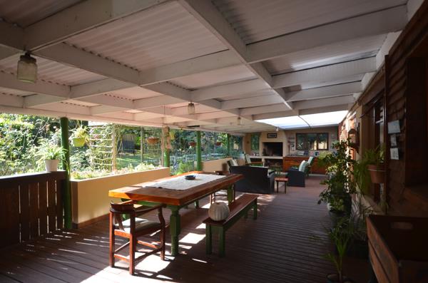 Surrounded by this beautiful country setting, there are two sets of accommodation units each offers private wet room, shower, basin, and toilet. Each unit has its own patio where you can relax and watch the abundance birdlife. A little mountain stream that passes by lends to the tranquillity of what this resort offers. The are extras like a general braai spot a large Lapa near the ''fox'' pub. The main house consists of a large open style lounge, dining, bar section and kitchen. 2 bedrooms. Glass doors lead to the stoep and luscious garden. All the dwellings are surrounded with different indigenous trees, gardens, ferns and forest growth. A typical French courtyard adorned with plants leads to a large dining room with seating for 28 guests. Breakfast and dinners are served from the well equipped industrial kitchen. The manager''s flat has 2 bedrooms en-suite bathroom and kitchen and close by is a double garage. The resort covers two stands.