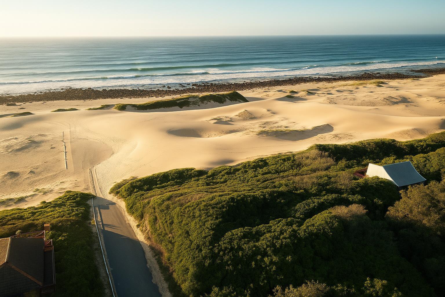 Nestled against a protected greenbelt, the surroundings provide both privacy and a rich connection to nature, with uninterrupted vistas stretching across the dune fields to the waves beyond. The landscape captures the essence of Cannon Rocks living, quiet, exclusive, and deeply scenic.