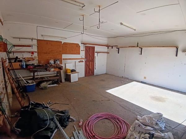 The double garage with manual roll-up doors and workshop space, has direct access via a lockable door into the servants'' quarters. A second door from the servants'' quarters has access into the backyard. The windows have burglar bars fitted.