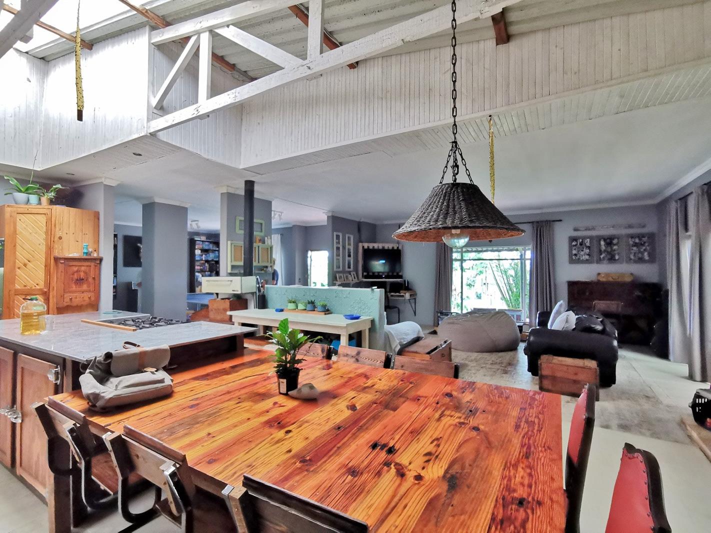 The main secure farm house features 3 bedrooms, 2 bathrooms (main en suite), an open plan kitchen with centre island, living and dining area leading out to an open patio with built-in braai and swimming pool. A double volume training room with wash area and storage section inter-leads to the main house. The adjacent flatlet features 1 bedroom, 1 bathroom and kitchen area. The courtyard leading to the grow tunnel has 2 large Wendy houses for extra accommodation. Located to the rear of the grow tunnel is a solar structure housing a pump and an aquaponics setup. There is a large open barn with surrounding agricultural outbuildings and water tanks close to the main house.