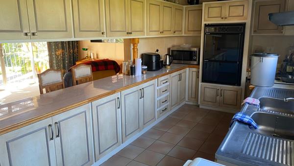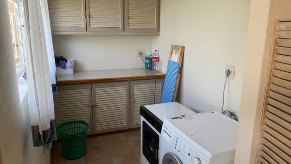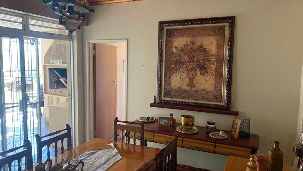 Just a few steps down, a sun-drenched lounge invites you to relax while overlooking the beautifully maintained garden. Continue down to the dining area, which seamlessly connects to the indoor/outdoor braai room and a cozy TV lounge. The kitchen is open and functional, flowing effortlessly into a separate laundry room.