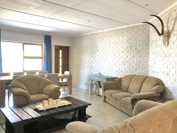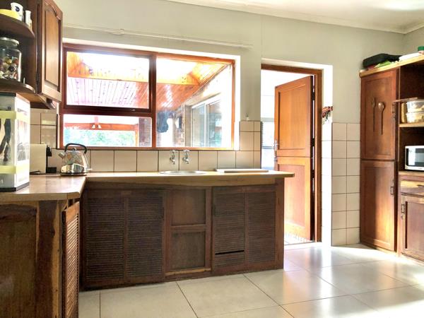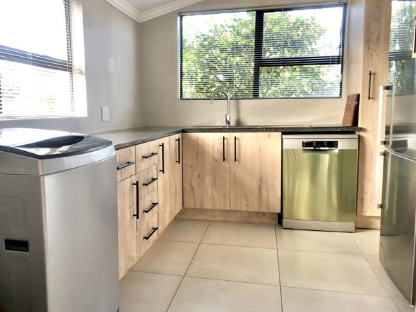 This low-maintenance home features three bedrooms, one of which can be used as a study or office if you want to work remotely. The property is walled and has a double garage, two bathrooms one en-suite, an open-plan kitchen, a lounge, a separate scullery, and an enclosed stoep at the back. Additionally, there''s a lovely braai area and boma outside for those summer evening braais. The property also boasts 5 x 5000L water tanks and a bonus of a one-bedroom flatlet for retired parents or additional visitors over the holidays.