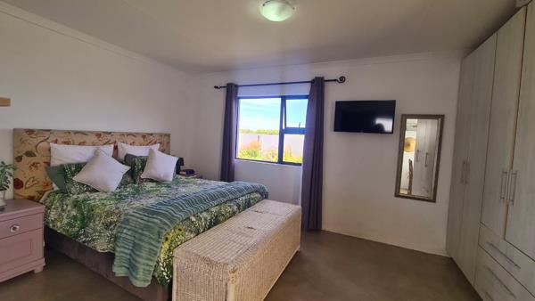 This charming two-bedroom home is perfect for those looking to start fresh or downsize. Thoughtfully designed for comfort, it features an open-plan lounge and a stunning kitchen that flows into an entertainment area, complete with a lovely braai space, an outdoor fire pit, and a splash pool, all set within a beautifully maintained garden. The two bedrooms offer generous cupboard space, and the modern full bathroom adds a quaint touch. A double garage provides ample storage, ensuring all your needs are met.