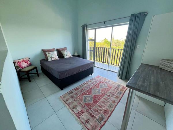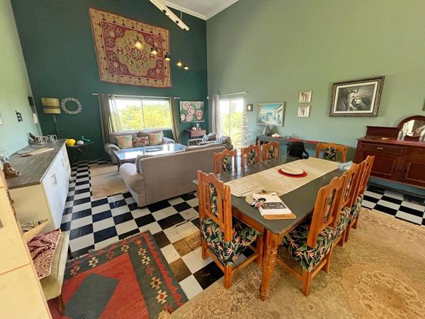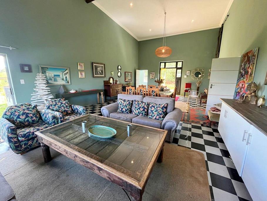 4 bedroom home with large grounds and great views . This 4 bedroom home with 4 en suite bathrooms has been built either as a home or to be used as an Airbnb. One enters into a large double volume open plan lounge and dining room with an exposed beam, aluminum doors and windows allowing for distant views of the sea. This leads into a large industrial type kitchen with plenty of cupboard space, a double oven, a gas hob, extractor fan and space for 2 fridges, a washing machine and dishwasher. A private spacious room with own alarm leads off the kitchen with a open plan bathroom, lounge area and plenty of built in cupboards. The 3 en suite bedrooms are on the other side of the house off the living area allowing for privacy for guests and the owner.