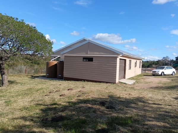 The two-bedroom, one-bathroom open plan house is constructed from timber framing cladded externally in Nutec boards and panelled internally. The separate common bathroom needs to be completed. Some of the accessories and fittings have already been purchased by the owner. The open plan kitchen can be custom designed by the new owner. Some accessories and fittings are available for the completion of the new kitchen.