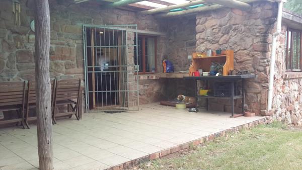 The cute thatched stone cottage on a small island surrounded by a dam consists of 2 bedrooms, lounge with fireplace, bathroom and outside braai area. The dam has a variety of eel, carp and bass.