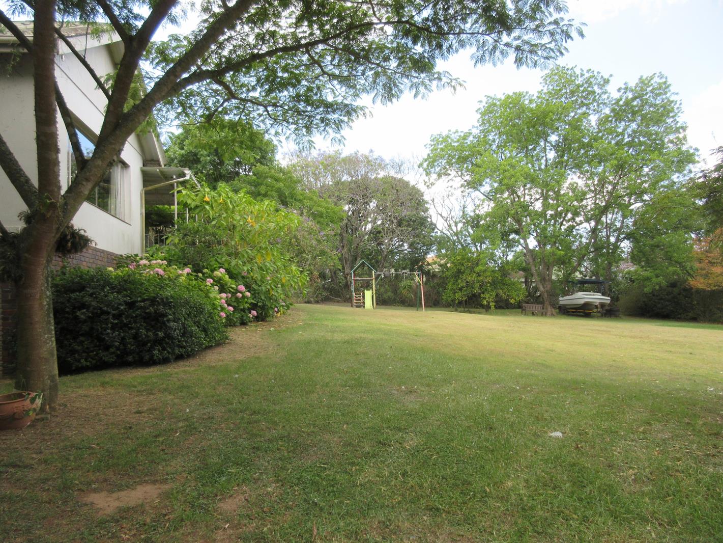 An absolute gem of a house, right next to the primary school! Three bedrooms with en suite bathrooms, two lounges, a dining room,, separate kitchen and a huge covered outdoor entertainment area, with a braai area,, a double garage, a double carport and a spacious flat. Then, we have over a hundred thousand litres of rainwater storage capacity, a splash pool and the capability to swap from solar to Eskom, should the power be insufficient. Also one geyser is solar and the other is on Eskom, so big electricity saving are a feature. There is a huge picture window in one lounge, which gives beautiful views of the front garden. The back garden features a chicken coop, and aviary, two veggie gardens and if this is not sufficient to tick all your boxes for the dream home, there are some fruit trees, including Mulberries, lemon, oranges, naartjies , grape fruit, pecan nuts, avocado, pears and bananas. On top of all of this the yard is fenced and there is remote controlled access to the property, and should you so desire, there is also municipal water.