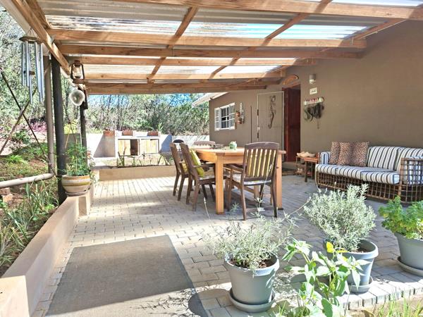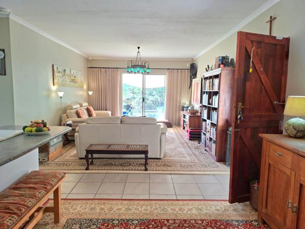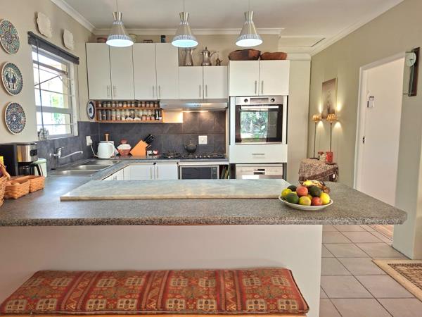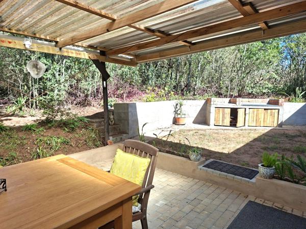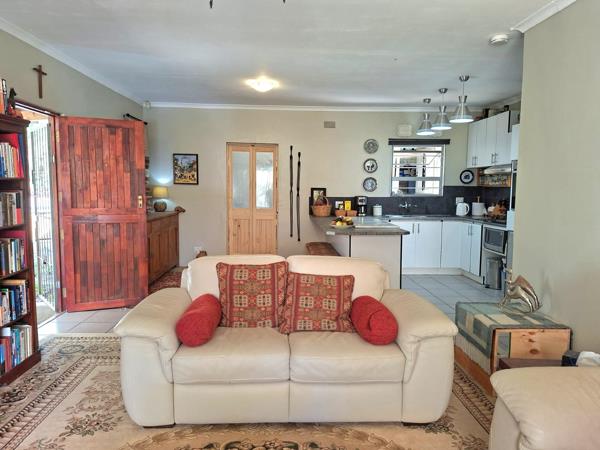 A spacious open plan living area and modern kitchen leading out to a private undercover patio with an adjoining braai area.