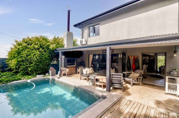 Nestled on the serene and peaceful East bank of Port Alfred, this three-bedroom home offers a truly unique living experience, far from the noise of everyday life. Positioned on a prime corner plot, the property boasts sweeping views of the Port Alfred Marina, Harbour, and the ocean, making it an absolute haven. As you enter through the gates, youre greeted by lush greenery that envelops you in tranquillity. The open-plan living and dining areas flow seamlessly onto a spacious outdoor patio and swimming pool area, complete with a cozy firepit, perfect for relaxing and entertaining. The lounge also features a separate deck that opens onto the roadside, ideal for enjoying your morning coffee while taking in the peaceful surroundings.