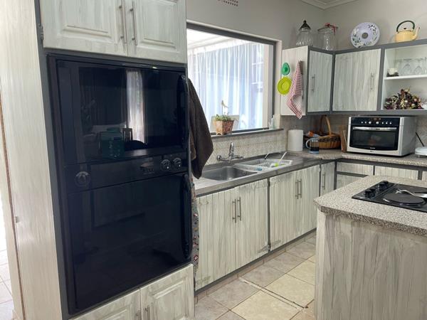 The open-plan layout seamlessly connects the lounge, dining, and brand-new kitchen areas, creating a spacious and inviting living environment. A separate utility room adjacent to the kitchen leads to an enclosed braai area, ideal for entertaining. Additional storage is provided by a generous walk-in pantry.