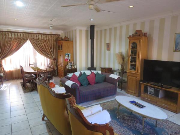 This good-sized home offers loads of potential for comfortable family living. Step through double doors into a tiled entrance hall that flows into a spacious lounge and dining area, complete with a cosy Morso fireplace. The kitchen is a great family space with a large farm-style table, built-in cupboards, scullery, eye-level oven, glass hob, and space for a dishwasher.