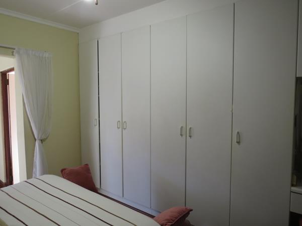 Down the passage are three bedrooms, all with laminate floors and built-in cupboards. The main bedroom has its own little lounge area and sunny enclosed patio, plus an en-suite. The second bedroom also has an en-suite, and there''s a third bedroom along with a separate bathroom and separate loo.