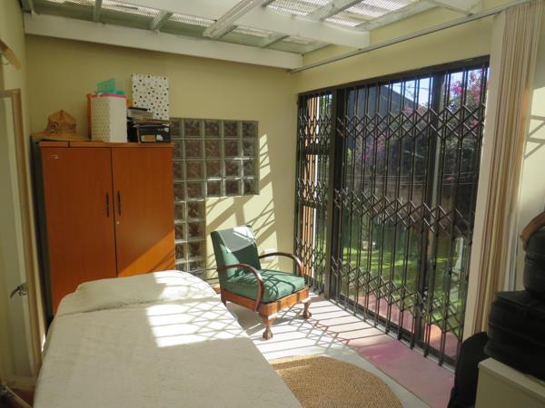 Out the back door, a covered patio leads to a wooden braai room and a fourth open plan bedroom and lounge area and a separate bathroom, ideal for guests or extended family. With a double garage, plenty of paved parking, walled garden, electric gate, and water tanks, this home has everything you need to make it your own.