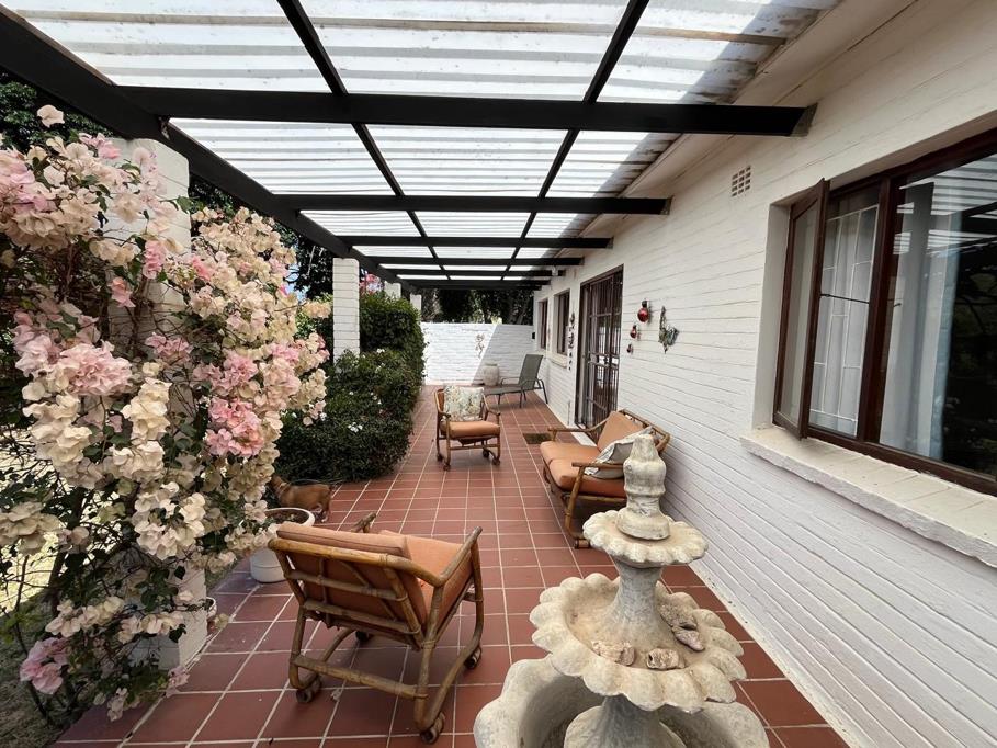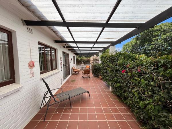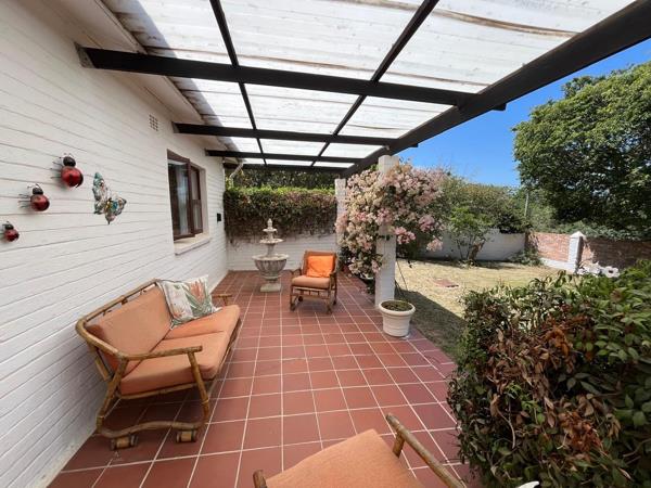 Discover this charming property located in the beautiful coastal town of Port Alfred, situated around the corner from the Royal Port Alfred Golf Course in the tranquil suburb of Forest Downs. This inviting home presents a classic white facade with a distinctive red-tiled roof. The spacious, well-treed yard and mature landscaping offer privacy and a serene outdoor environment, complemented by a welcoming pergola-covered deck and a paved patio area, perfect for enjoying the Eastern Cape climate.