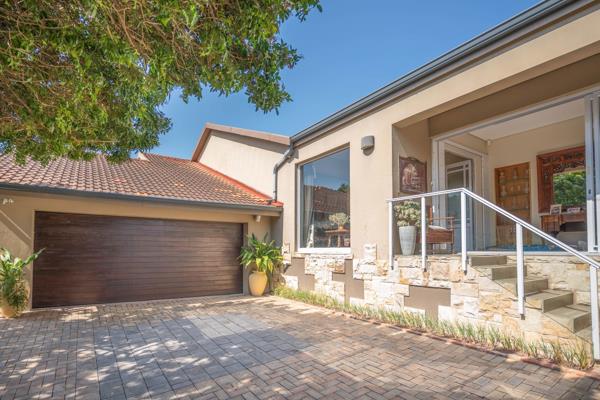 The gated entrance of this stunning property leads you down the smart stone paved driveway to ample parking space and two extended double garages. These garages have automated doors, ample cupboard and storage space with one of the garages having access into the main house.