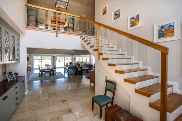 One enters from the perfectly manicured, sheltered garden into the hall and then to the breathtakingly open plan entertainment area with dance hall dimensions.