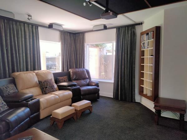 The expansive living room flows seamlessly into a sun lounge and a family dining area, which opens onto the outdoor entertainment space through fold-back doors. The modern kitchen is a chefs dream, equipped with a gas stove, prep bowl, built-in coffee machine, and ample counter space for casual dining. A separate scullery houses the laundry, a lockable pantry, and an inverter system for effortless power management. Additional features include a washing machine, tumble dryer, and dishwasherall plumbed for convenience.