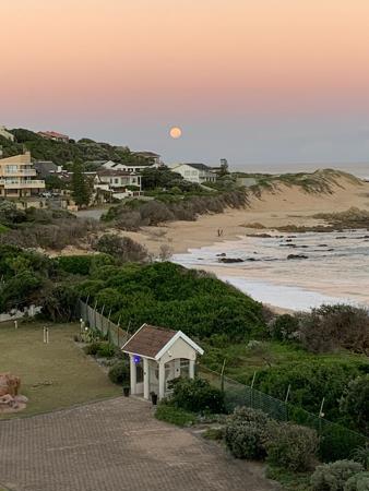 The spacious main bedroom, also located off the living area, boasts a full bathroom with double sinks. This bedroom opens out onto the same gorgeous patio overlooking the sea. The estate itself offers a communal swimming pool, braai, and picnic facilities for residents to enjoy, as well as direct access to the beautiful, well-kept gardens and the pristine beach. The property also includes a double garage, providing ample parking space.
