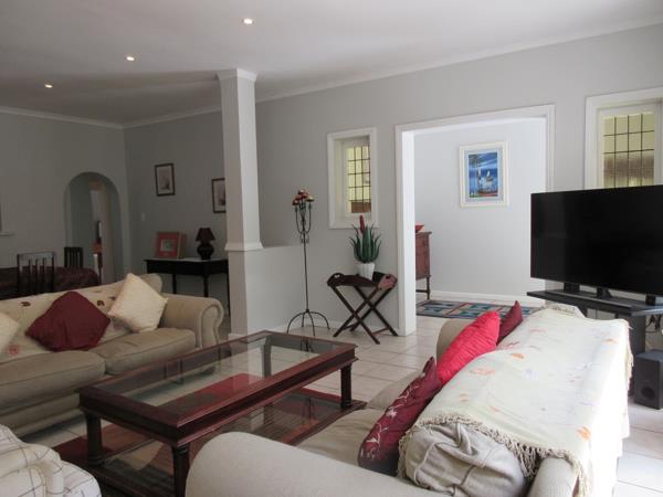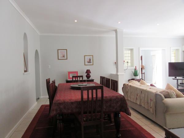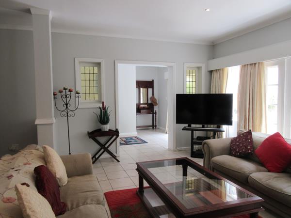 The modern kitchen is fitted with granite countertops, ample cabinetry, and a separate scullery and laundry, leading directly to the undercover entertainment patio with built-in braai and outdoor sink an ideal space for gatherings.