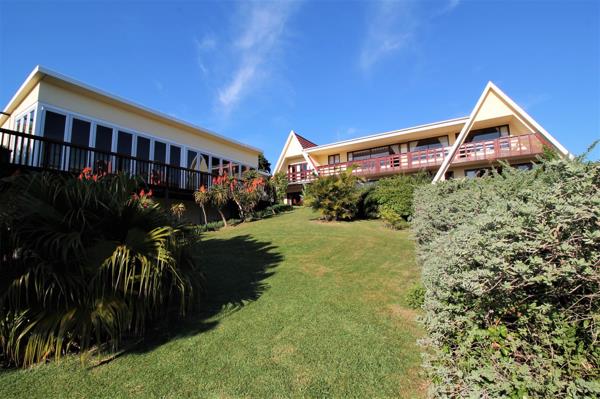 Riverside: Two attached Homes with 6 Bedrooms, 2 plots and a Private Jetty. Spectacular spacious home overlooking the river in a lovely garden setting. Two plots totalling 2605m2 with a second entrance on the western boundary. Three bedrooms all ensuite and a living room extending onto a sunny patio and braai area provide accommodation as a Bnb with an interleading door to the main home.