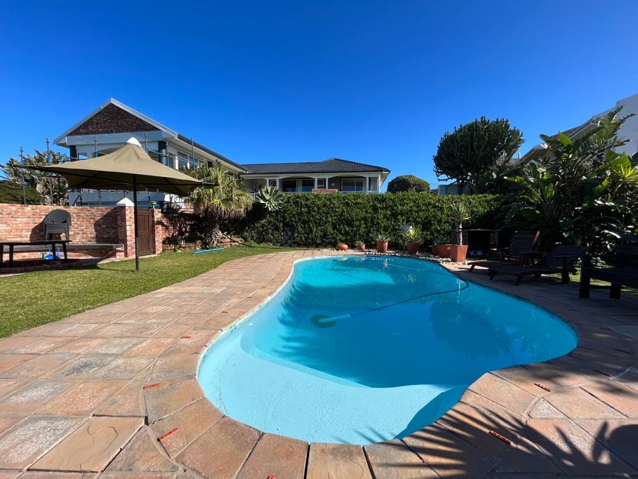 There is also an entertainment area with a large built-in stainless steel braai, a custom built bar, with amazing views and aluminium stacking doors that open up to the garden and the magnificent swimming pool area. The swimming pool area is private from the road and totally walled in.