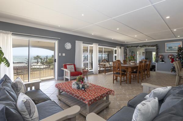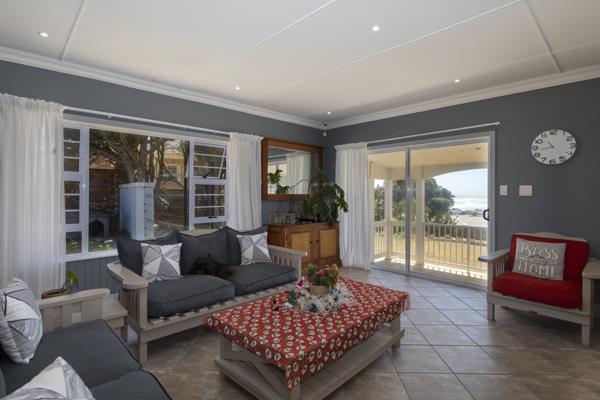 Wake up to uninterrupted ocean views and the sound of waves rolling onto Kellys Beach, a lifestyle few get to call their own. This generous beachfront residence offers an exceptional blend of space, comfort and effortless coastal living, with multiple living and entertainment zones designed for relaxed family life. The main living area is bright and inviting, featuring an open plan lounge, dining space and a well appointed kitchen with scullery. Large doors open to a sunny patio where you can unwind beside the swimming pool while taking in the stunning stretch of Blue Flag shoreline. Two additional lounges flow from the central living hub, creating flexible spaces for movie nights, quiet reading, or gathering with friends. One of these rooms boasts a stainless steel braai, built-in bar counter and stack doors that seamlessly connect the indoors to the front garden and sweeping sea views.