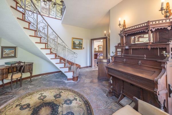 As a whole, the property comprises four individual erven. The main residence is located on the eastern side of the property and boasts elevated views of the town and ocean. Step inside to yesteryear, where a grand foyer welcomes you on arrival, and a spectacular, ornate staircase leads the way upstairs. Interior living is vast, with the ground floor comprising both a formal and informal lounge, a dining room, a billiards room, a large kitchen with a pantry, a study, and a powder room.