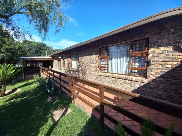 The main house features 3 comfortable bedrooms and 2 bathrooms, with a spacious open-plan layout leading to a covered patio with built-in braai perfect for relaxed outdoor entertaining.