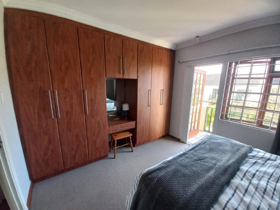 The unit boasts open-plan living with a neat, spacious layout. The kitchen features a breakfast nook and granite-tiled finishes, seamlessly flowing into the lounge and dining area. From the ground floor, with doors leading out to east and entertainment area, with a built-in braai the west side being a sheltered spot, with a washing line and a water tank that is plumbed into the house with a pressure pump. A guest toilet is also conveniently located on this level.
