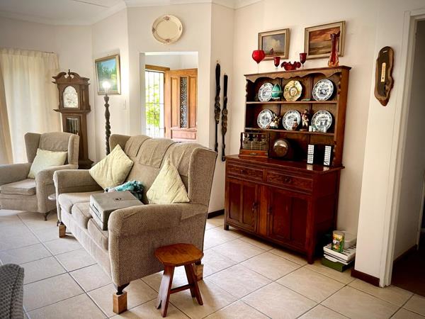 There are 3 bedrooms, 2 with fitted cupboards and a full bathroom and a shower room and a spacious passage cupboard. The main bedroom has a bay window which matches the living room bay window and the house is light and bright.