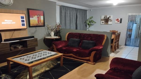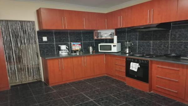 The home features three bedrooms with 2 bedrooms having laminated floors (no built-in cupboards) and a nice-size family bathroom. The huge fitted kitchen boasts granite tops, an electric hob, and an undercounter oven a real treat for those who love to cook.