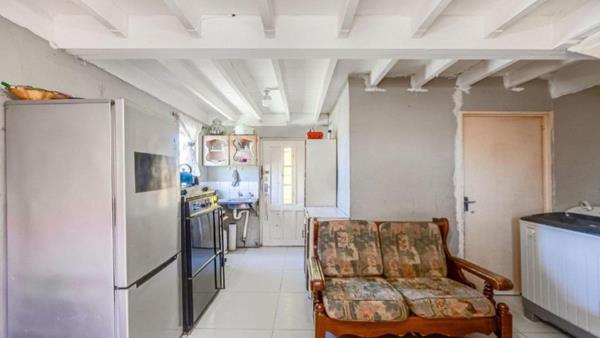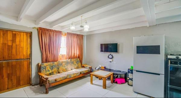 The front door welcomes you into a cosy kitchenette that flows seamlessly into a spacious lounge area perfect for relaxing or entertaining guests. The tiled bathroom features a generously sized shower, toilet, and a geyser for reliable hot water.