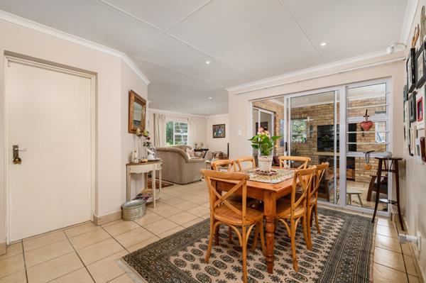 Outdoor living is a highlight, with a welcoming patio with braai and a dedicated braai room, perfect for hosting gatherings. The property boasts a refreshing pool, a well-maintained garden, and paving, creating an attractive exterior. Parking is generous, with two garages and an additional four parking spaces, complemented by a driveway. Pets are allowed, and the home is wheelchair-friendly, enhancing its appeal to a broad range of buyers. A wendy house provides extra storage or utility space.