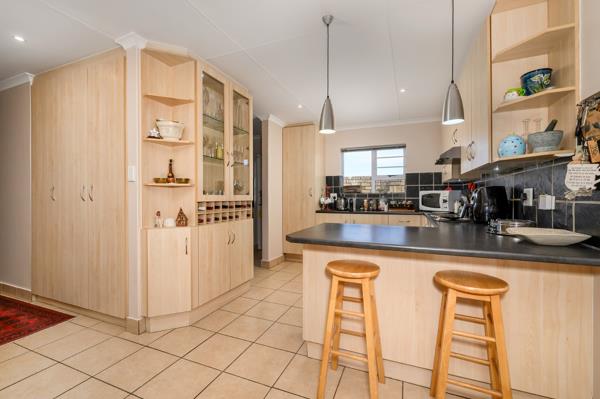 This inviting 192 sqm family home, nestled within a secure estate in Beverley Grove, Port Elizabeth, offers a blend of comfort and modern living. Upon entering through the entrance hall, you are greeted by an open-plan layout that seamlessly connects the lounge, dining room, and kitchen, creating an ideal space for both daily living and entertaining. The well-appointed kitchen with separate scullery is designed for functionality.