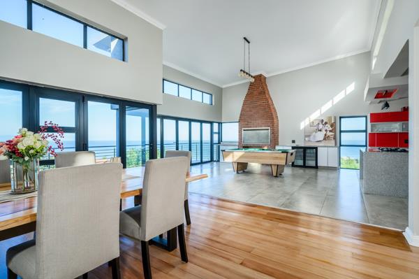 Downstairs, a fully equipped Kitchenette serves a generous open plan dinning and a lounge area . Three beautifully appointed bedrooms ,each offers an an-suit bathrooms and ample cupboards space, ensuring privacy and comfort for family or guests. Stacker doors open unto covered patio where the sea breeze and stunning views create the perfect setting for outdoor relaxation or entertain .