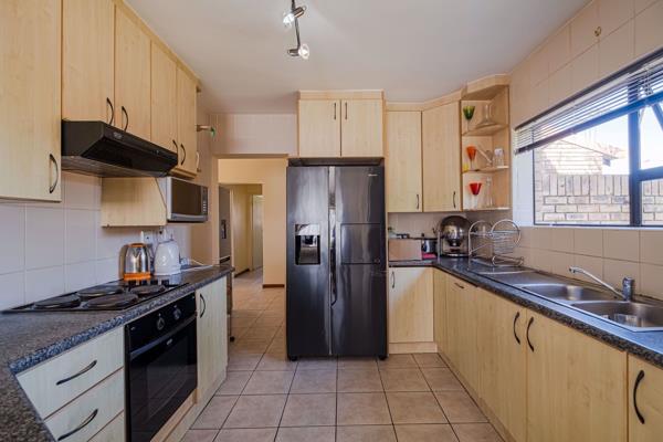 The remote-controlled double garage leads directly into the home, where youll find a convenient guest bedroom with its own en suite ideal for visiting friends or family. The living area is wonderfully light and bright, tiled throughout and designed for effortless flow. It includes formal and TV lounges, a dining room and a spacious, well-planned kitchen. With loads of cupboards, a hob, extractor, under-counter oven and a wine rack, its perfectly set up for both everyday meals and entertaining. The family room opens to a covered braai patio your go-to spot for relaxed weekend gatherings.