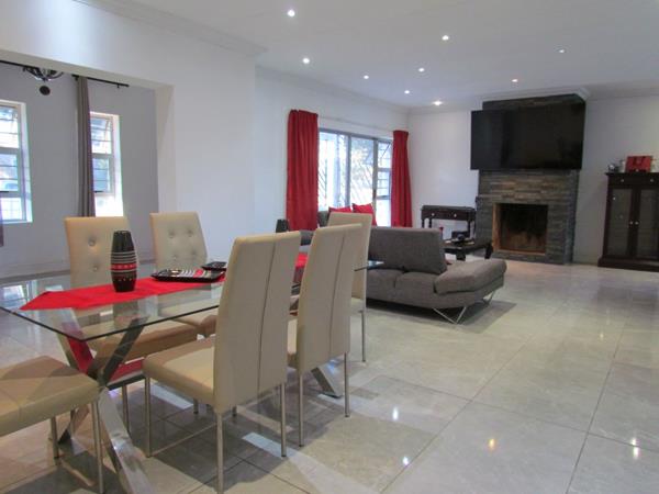Spacious open-plan living areas with indoor braai and dual stacker doors leading to backyard and garage