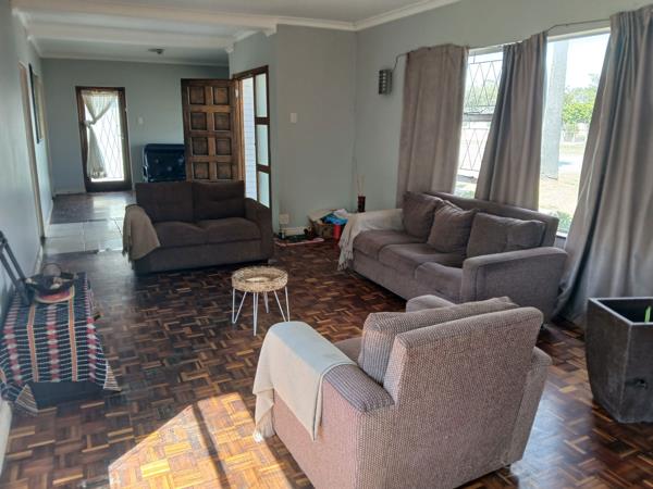 The property offers three spacious bedrooms with built-in cupboards, one and a half bathrooms, and two large living areas with a cosy fireplace for winter evenings. There is an undercover braai area perfect for entertaining, a single garage with a domestic room, and an expansive yard with more than enough space for future development.